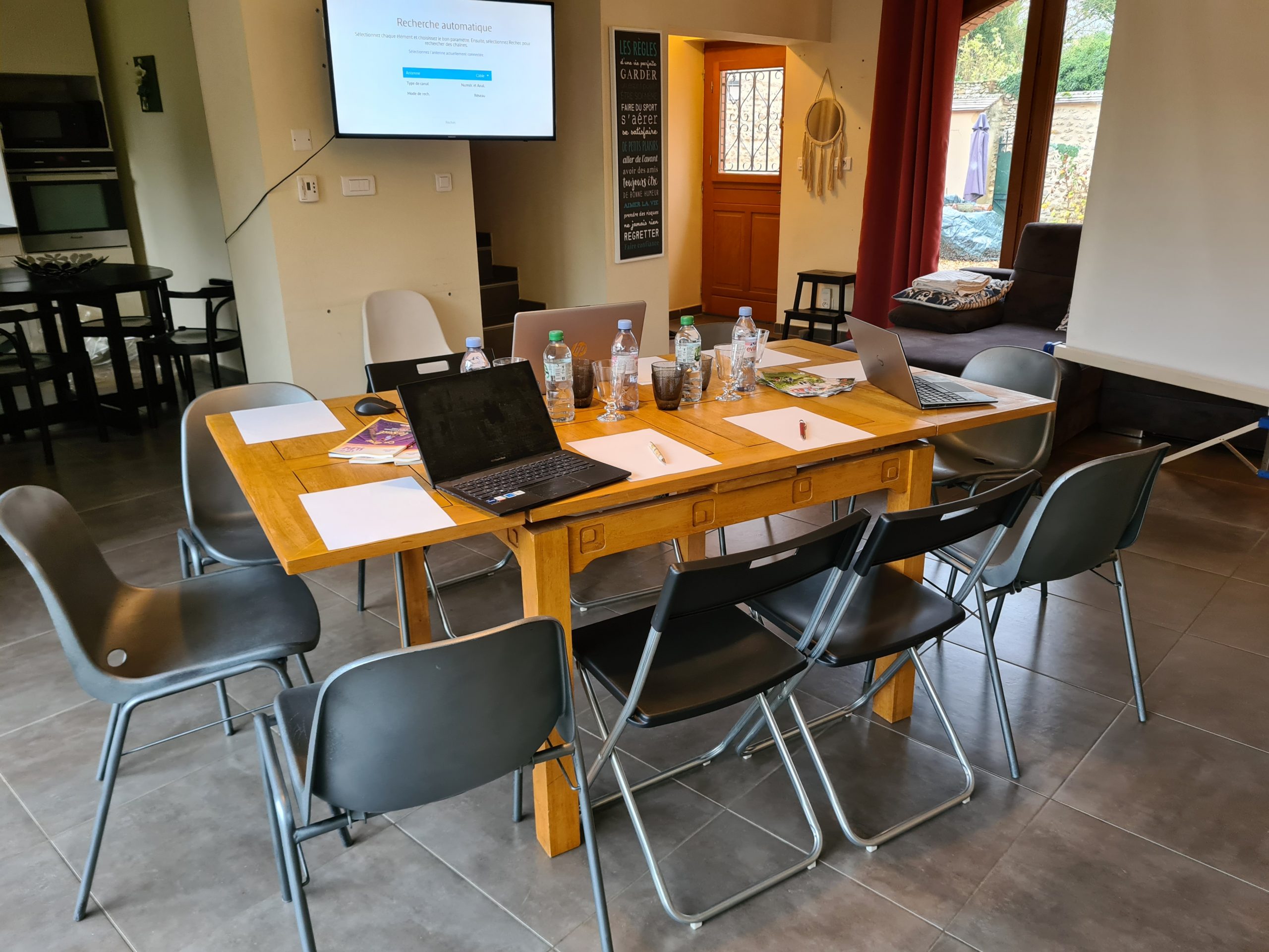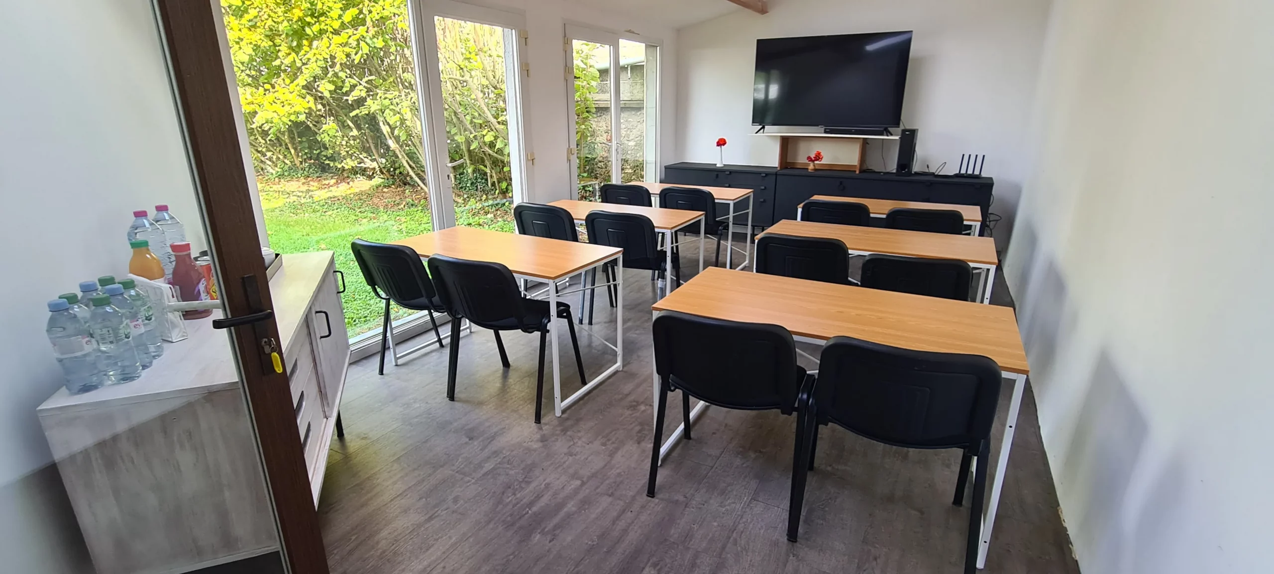 Dans un cadre paisible, organisez vos réunions de travail dans notre salle dédiée, confortable et dotée des toutes dernières technologies.